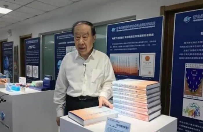 2018年6月12日上午,習近平在青島海洋科學與技術試點國家實驗室,聽取了79歲的中國工程院院士管華詩關于海洋藥物研發情況的介紹。